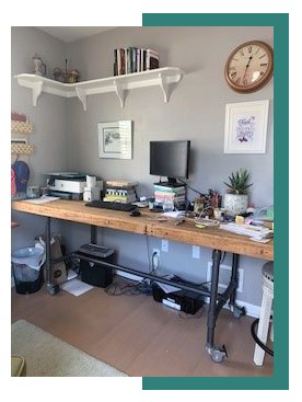 While some of us rearranged our lives, others rearranged their furniture, carving out space to work from home. Amy Steinmeyer, an accounting assistant, and her husband Tom moved a butcher block table from their dining room to a bedroom. Tom got bumped to the basement “office space.”