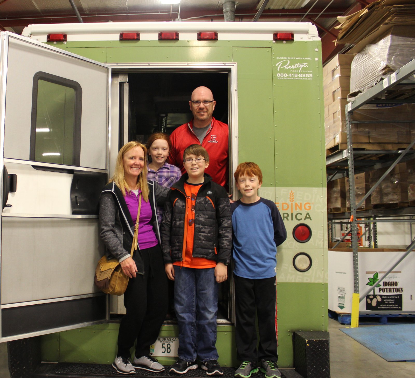 Dr. Paige and Scott Berryman pose with their children, Betsy, Charlie and Will, in the Kids Cruisin’ Kitchen truck.